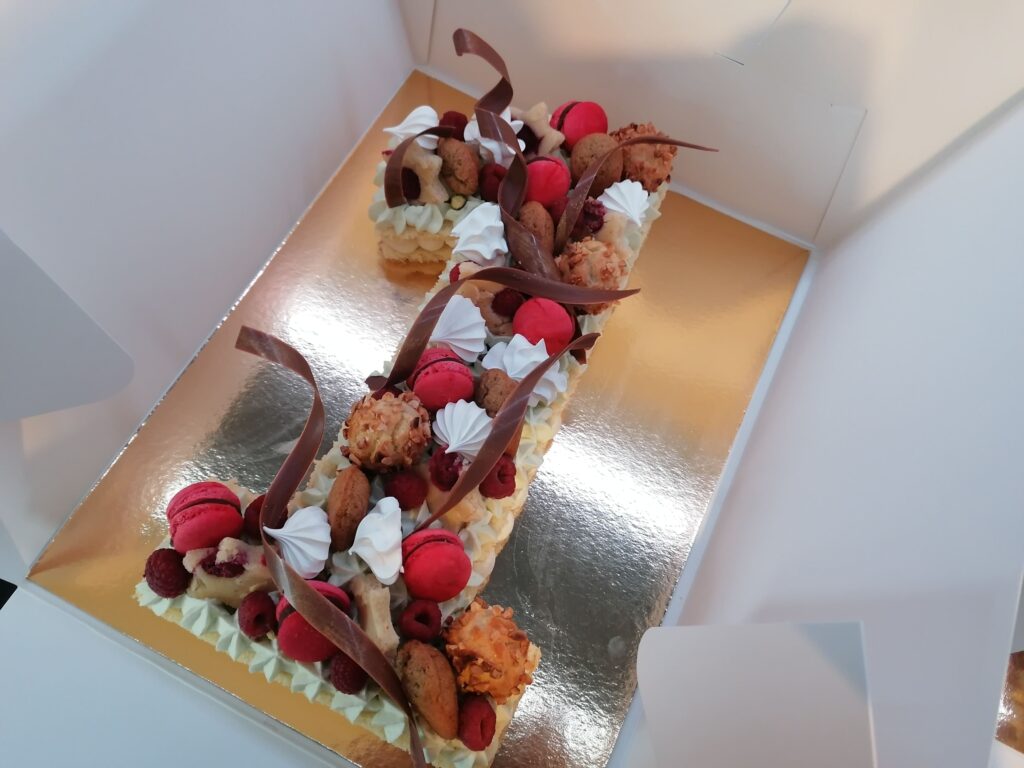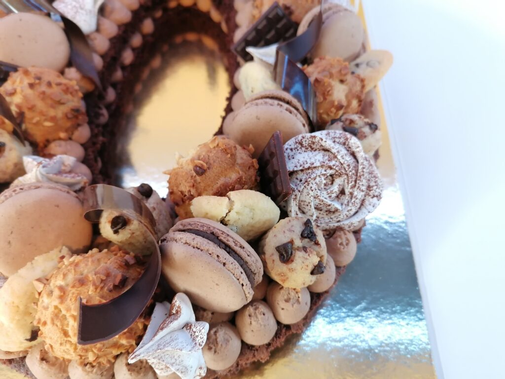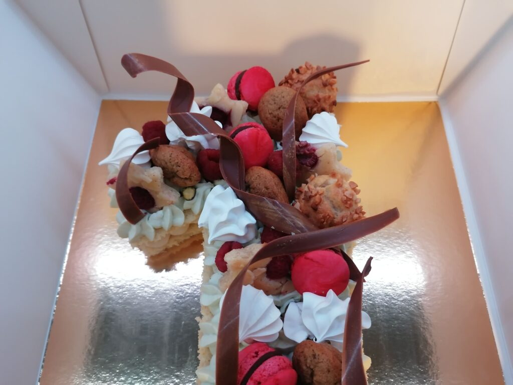 - Dans tous les cas, suivre le procédé tel qu’il est donné dans la recette de base, celui du number cake choco, en n’hésitant pas à modifier la composition, le pochage, l’intérieur, mais aussi le décor, du number cake à confectionner.