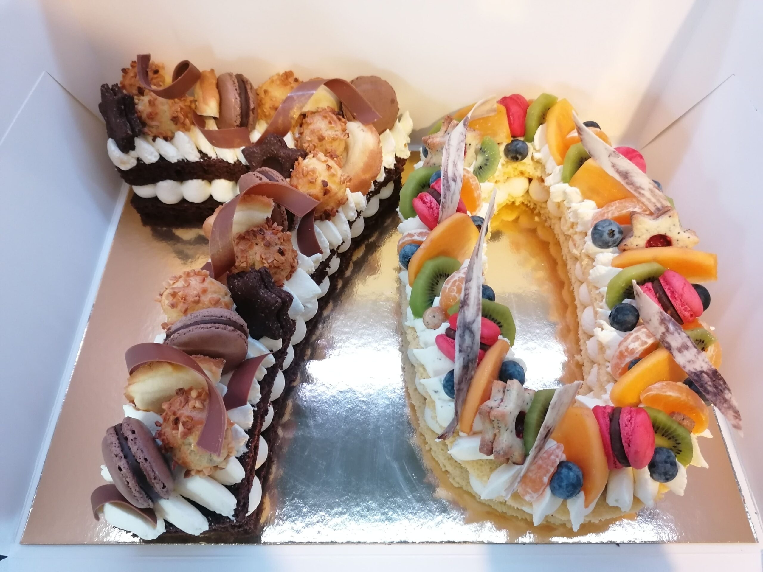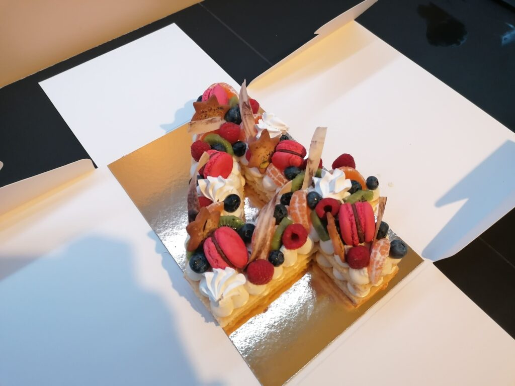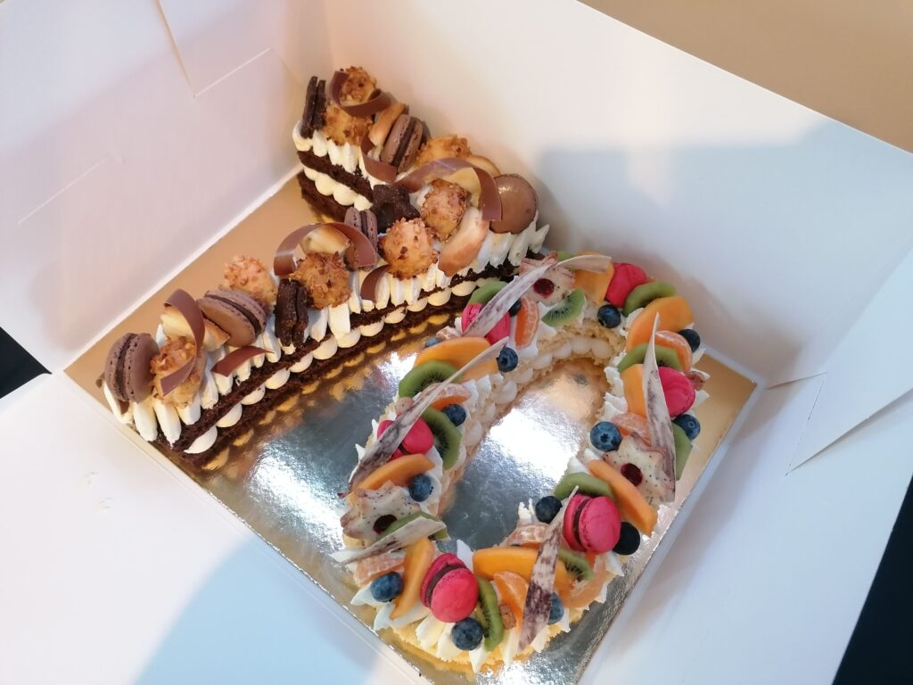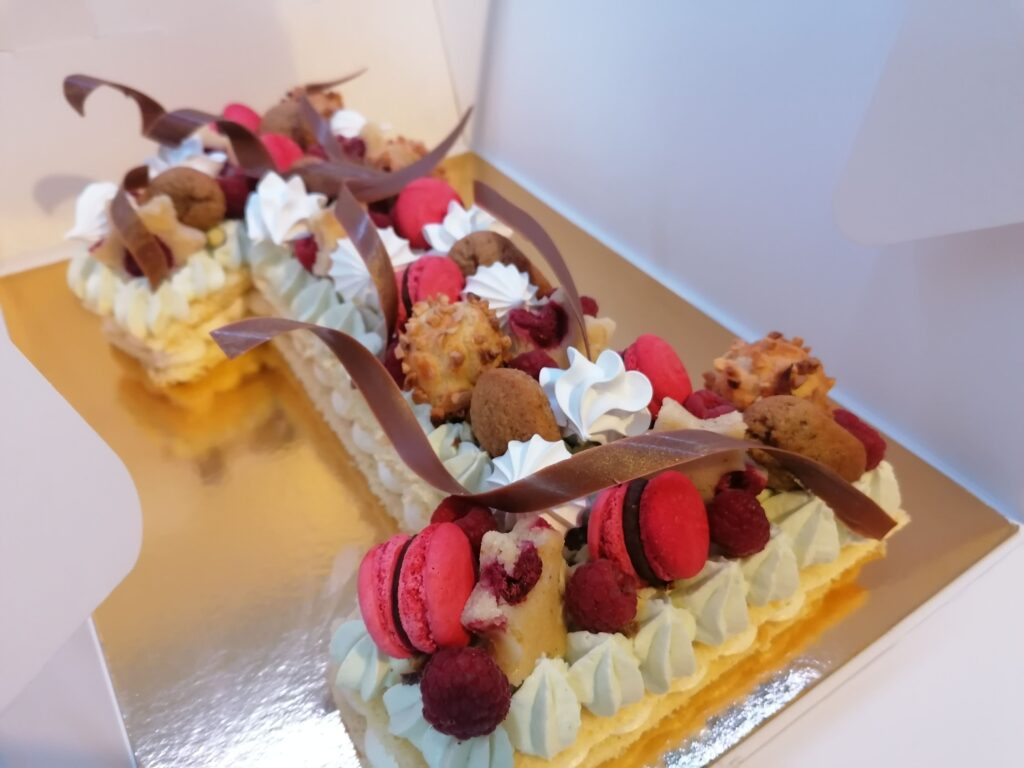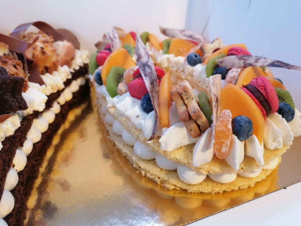 N°3 : le number cake moitié choco vanille, moitié vanille fruits