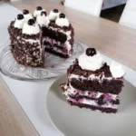 • Conserver, proche de soi, sur le plan de travail et passer, de suite, au montage de la Forêt Noire, ceci avant que la crème ne tourne due à chaleur de la température ambiante et/ou qu’elle ne retombe.