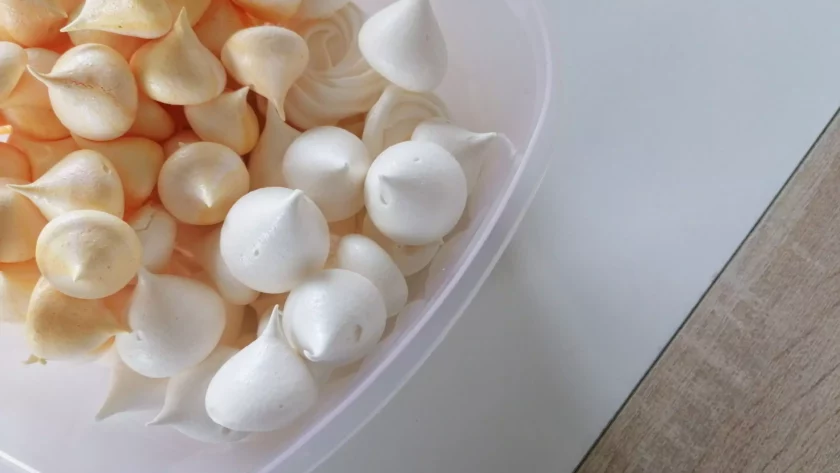 - Meringues séchées/cuites, dans une boîte hermétiquement fermée :