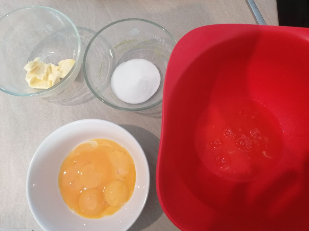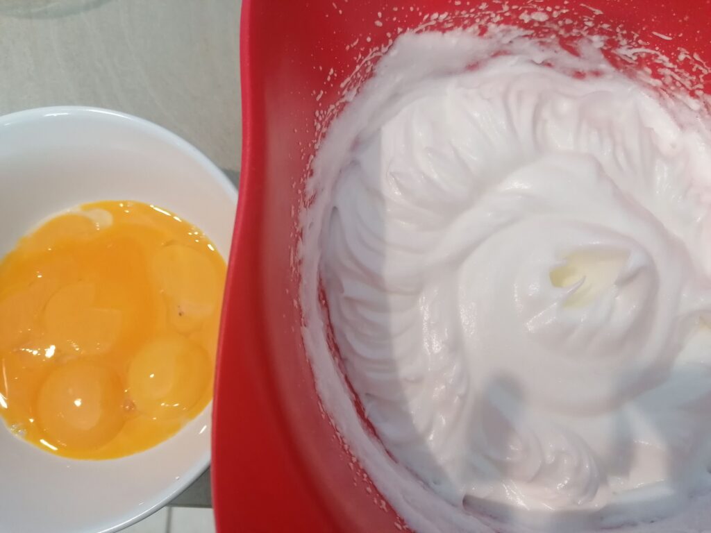 - En parallèle, clarifier les œufs dans 2 récipients différents, les jaunes dans un bol et les blancs dans un grand cul-de-poule.