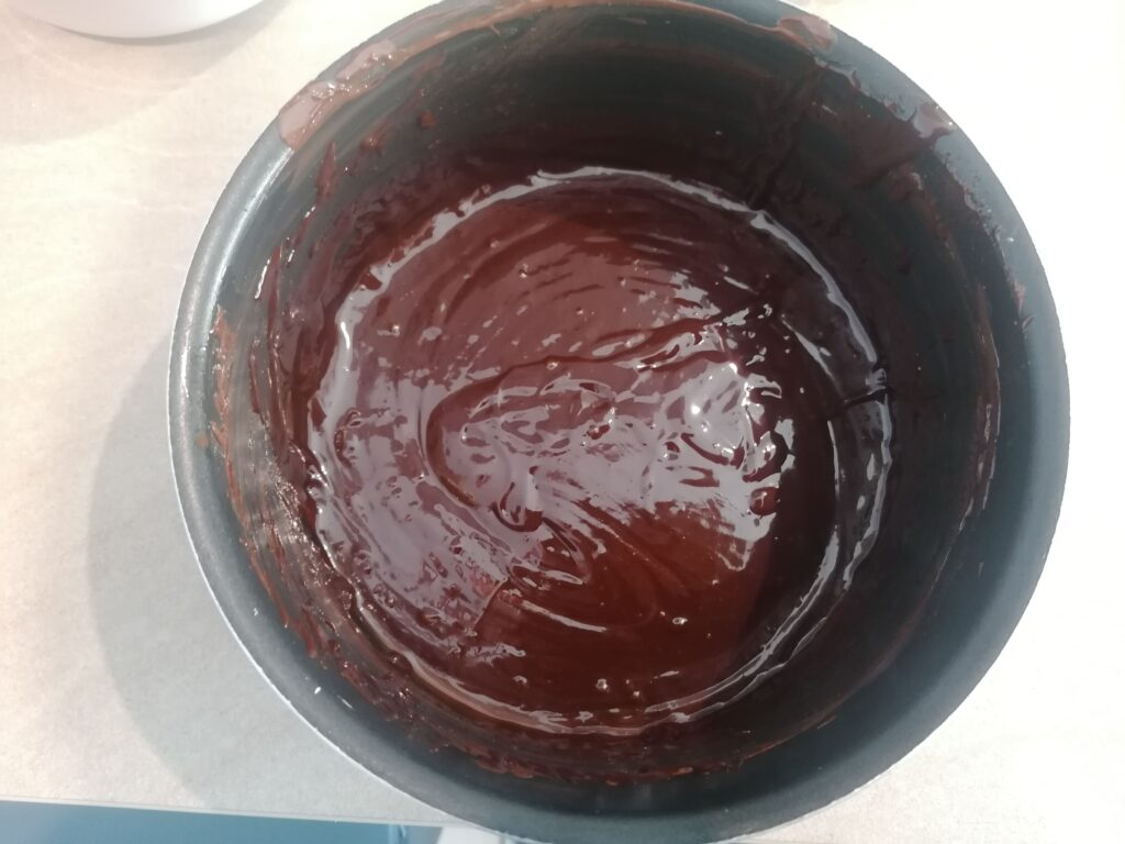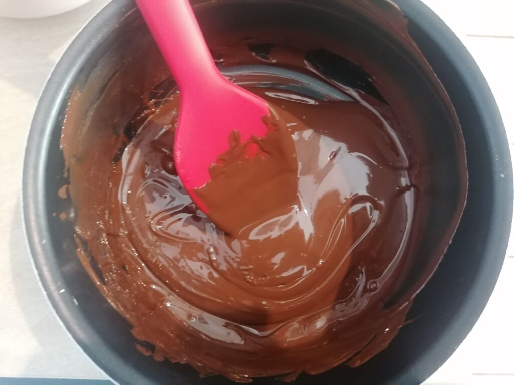 - Au bain-marie, fondre le chocolat noir préalablement coupé en morceaux.