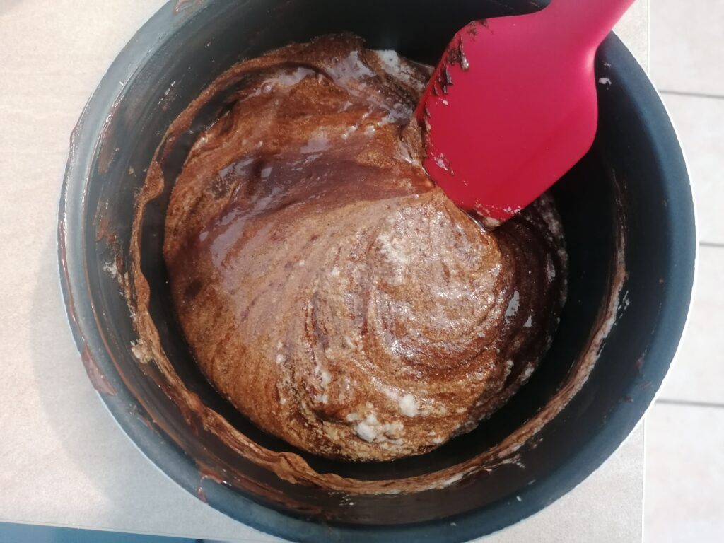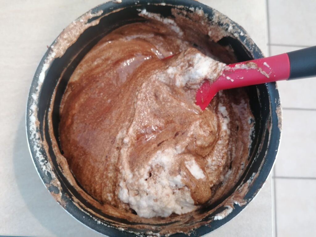 - Détendre le mélange au chocolat en incorporant à la maryse une petite quantité de blancs en neige puis finir de les ajouter en 2 à 3 fois, délicatement et sans les casser, jusqu’à homogénéisation de la préparation.