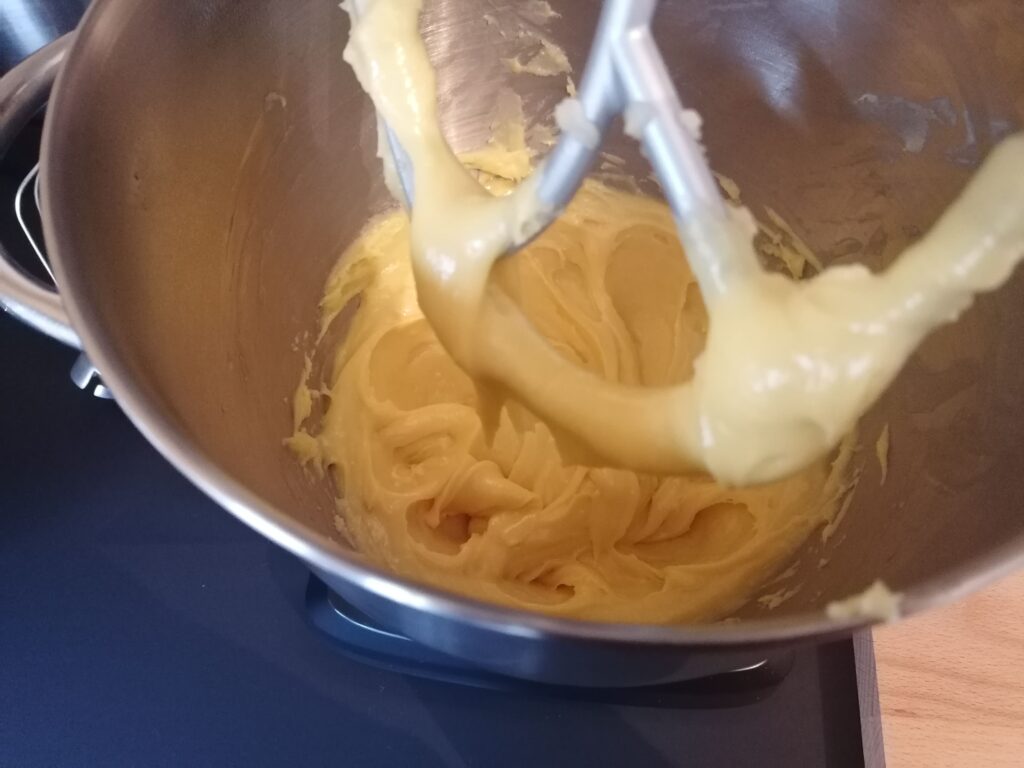 - chaque ajout supplémentaire d’œufs doit se faire à chaque fois que la quantité précédente y est bien incorporée, ceci afin de laisser le temps à la pâte de se réhydrater lentement mais aussi et surtout pour ne pas ajouter d’œuf dans une pâte qui n’a pas assimilée la quantité précédente et qui pourrait devenir, au final, trop liquide, ceci sans s’en être rendu compte, ce qui rendrait la situation compliquée à rattraper !