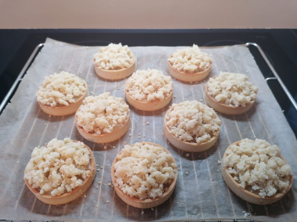 Crumble classique, version émietté sur tartelettes avant cuisson