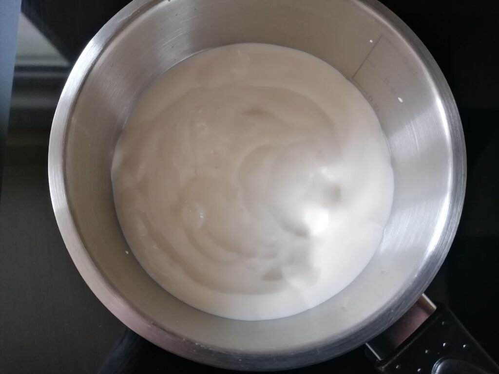 - Remuer encore quelques temps jusqu’à obtention d’une texture lisse et épaisse.