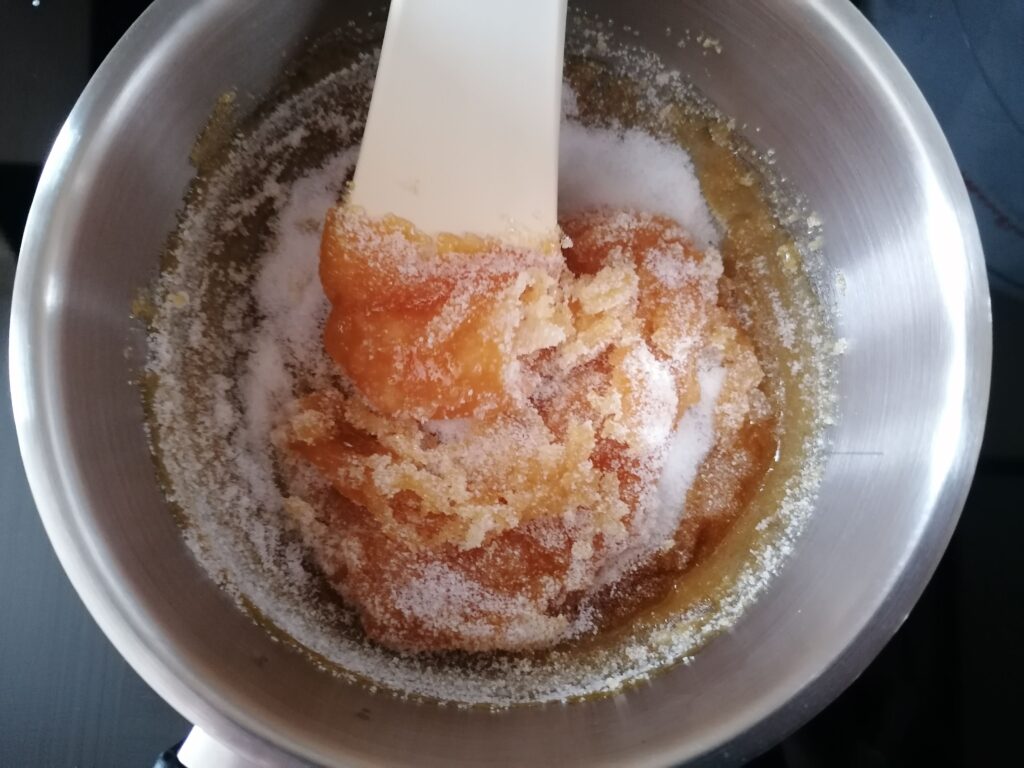 - Réitérer l’opération en y versant une autre partie du sucre semoule restant, et ainsi de suite jusqu’à épuisement de ce dernier.