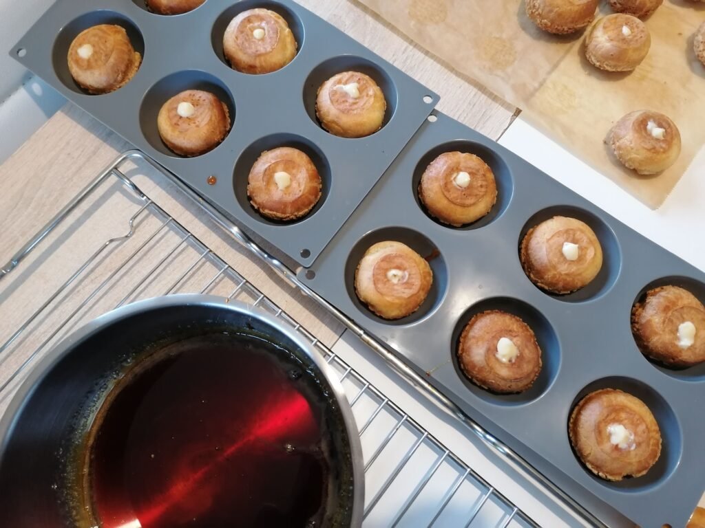 Caramel réalisé avec les ingrédients de la 1ère option pour glaçage et collage/montage number cake en choux