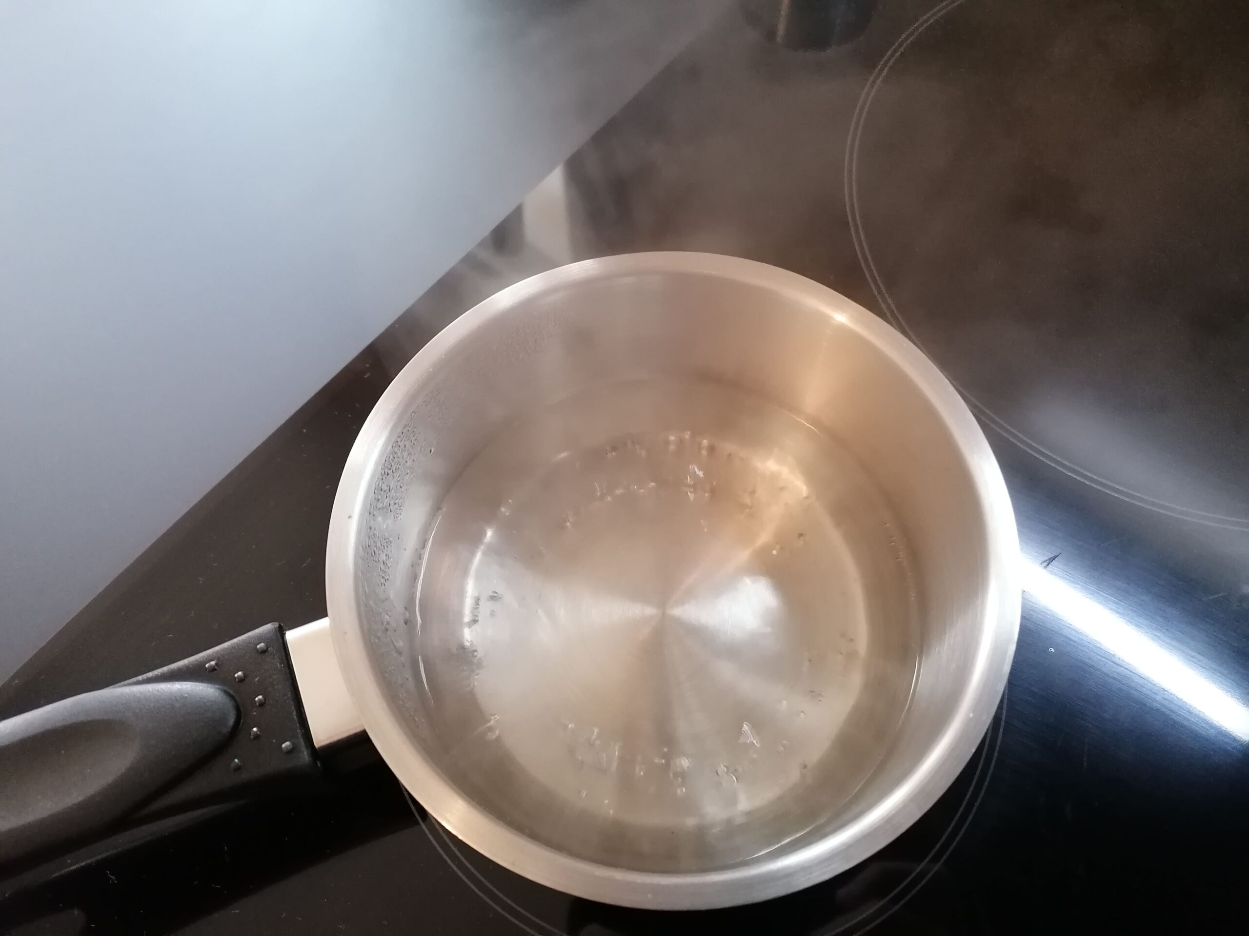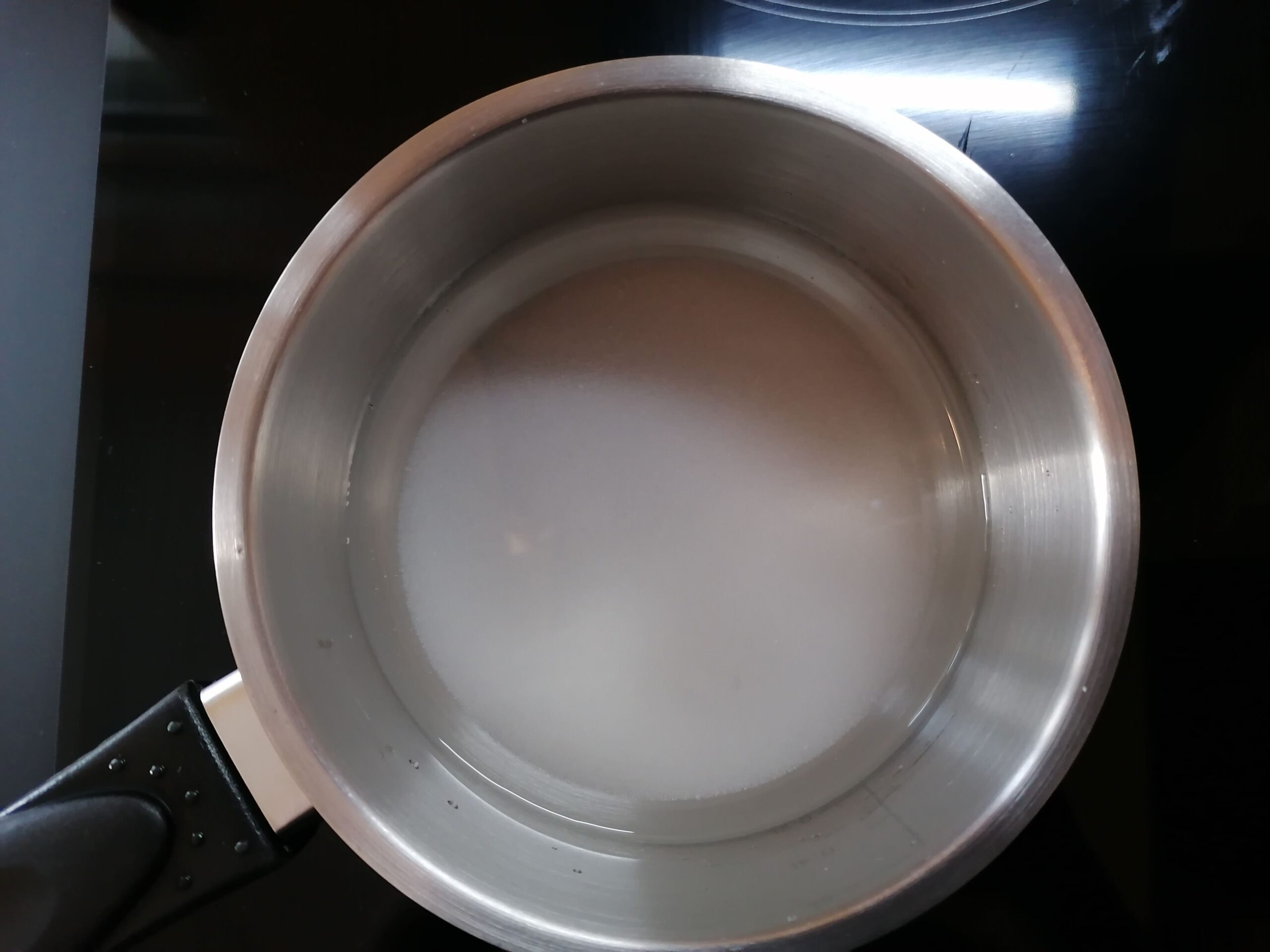 - Dans une casserole et sur feu vif, réaliser un sirop en portant à ébullition l’eau avec le sucre semoule.