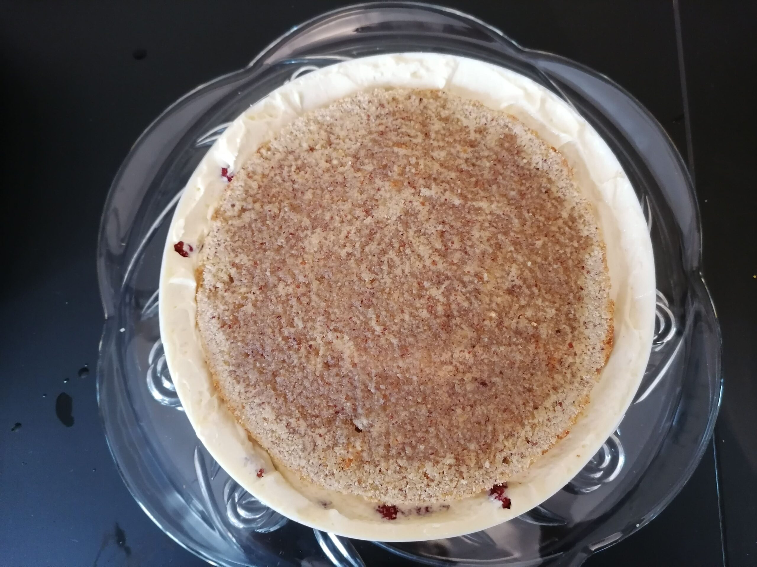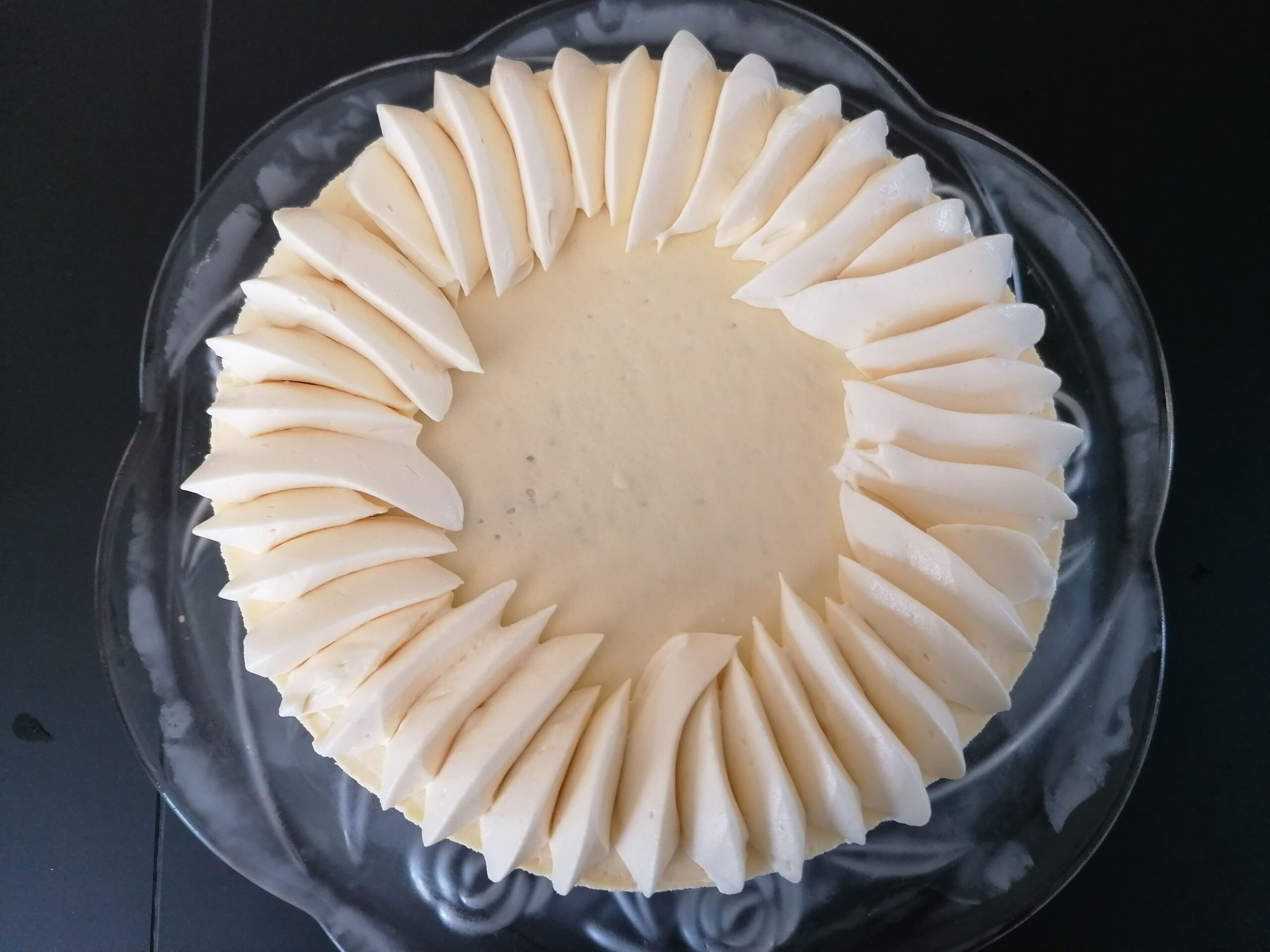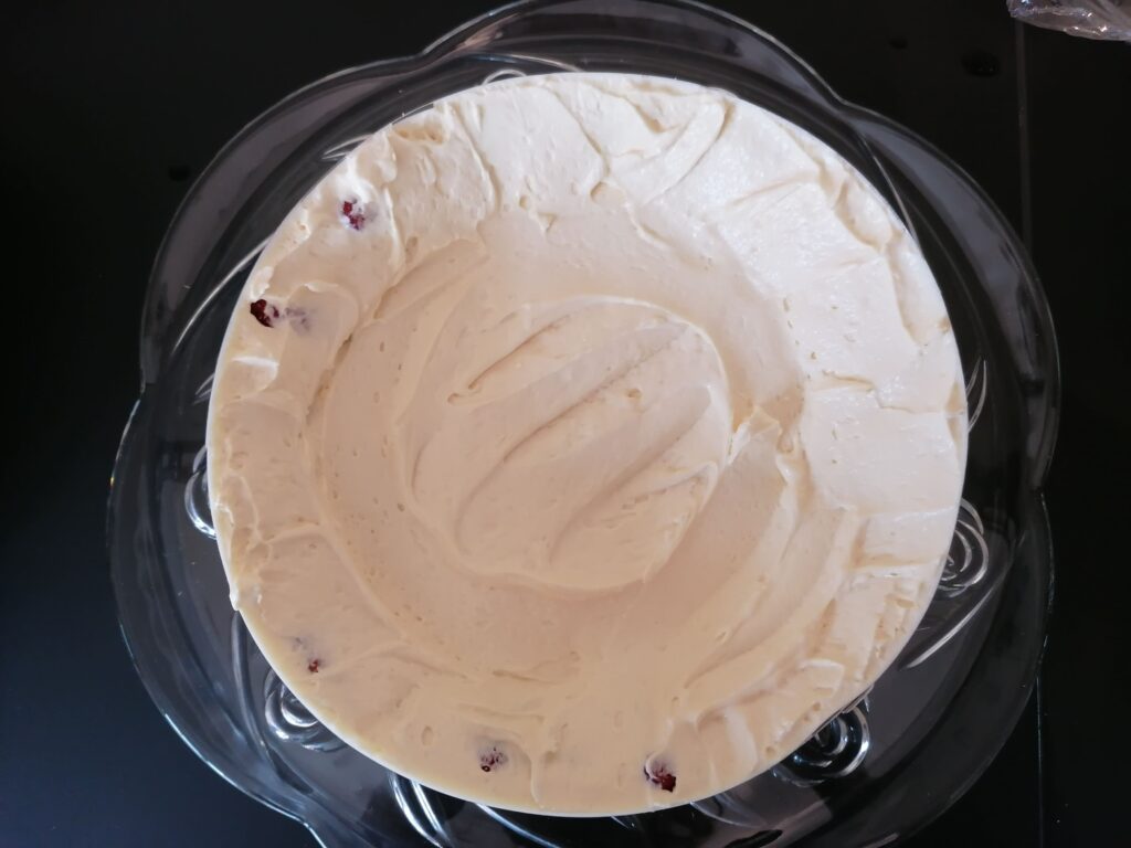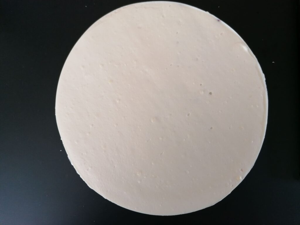 - Si des manques apparaissent, rajouter de la crème aux endroits le nécessitant puis lisser de nouveau toute la surface de l’entremet.