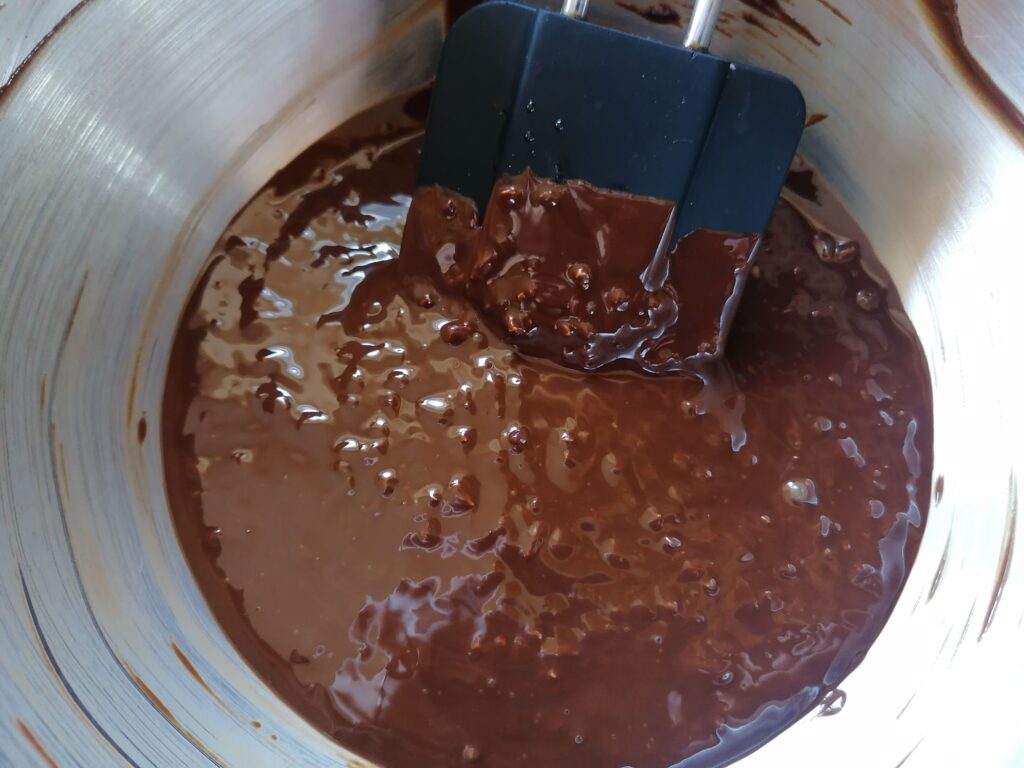 - Avant utilisation, réchauffer le glaçage au bain-marie afin de fondre à nouveau le chocolat qui aura cristallisé au froid.