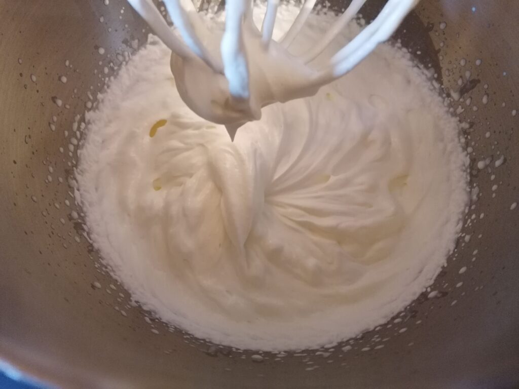 - La crème montée doit être prête avant que le mélange pâte à bombe/mascarpone ne le soit au risque que ce dernier ne fige rapidement, avant même d’avoir pu y incorporer la crème.