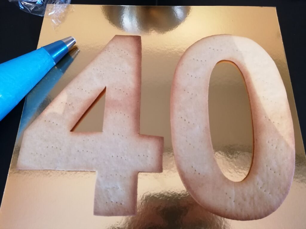 - Le jour prévu à cela, cuire les chiffres en pâte sucrée, comme expliqué dans la recette de base, puis les conserver à température ambiante jusqu’à leur utilisation finale, soit le lendemain.