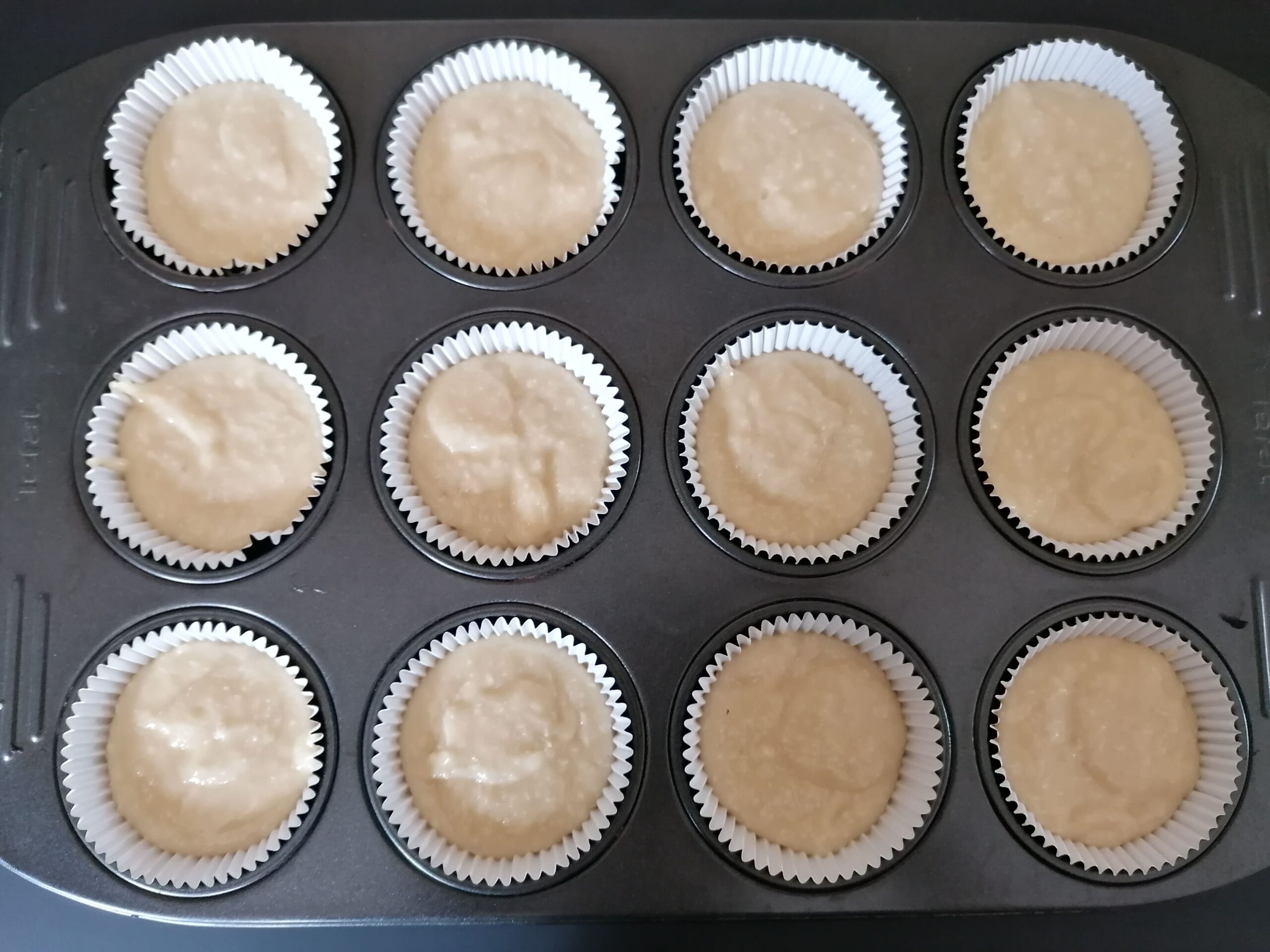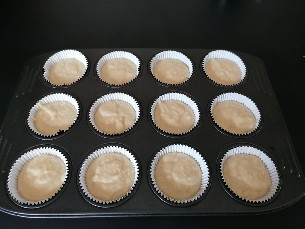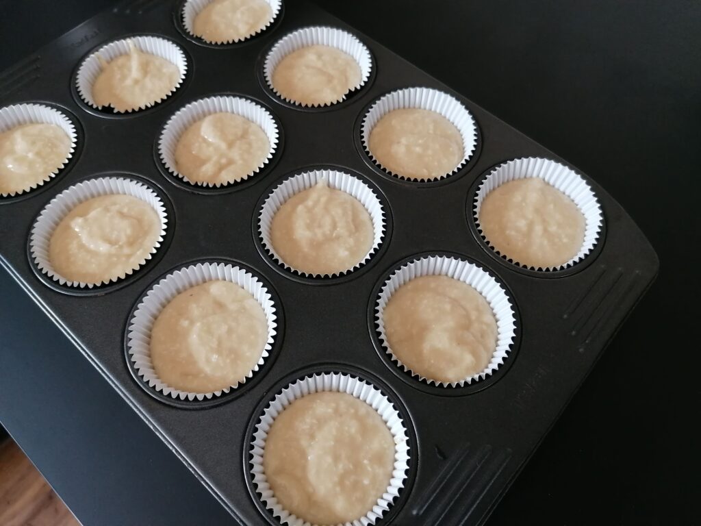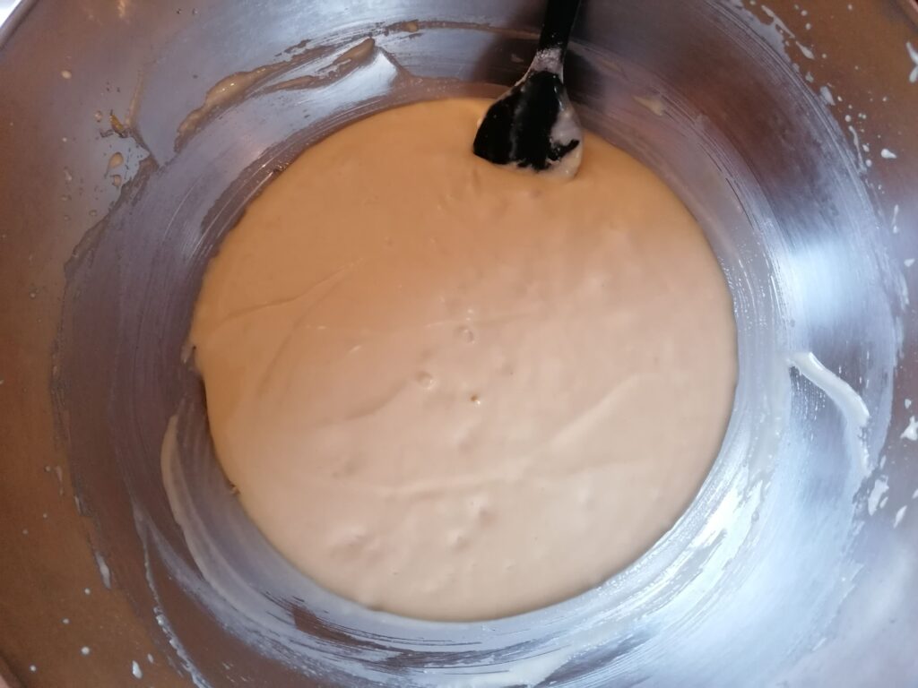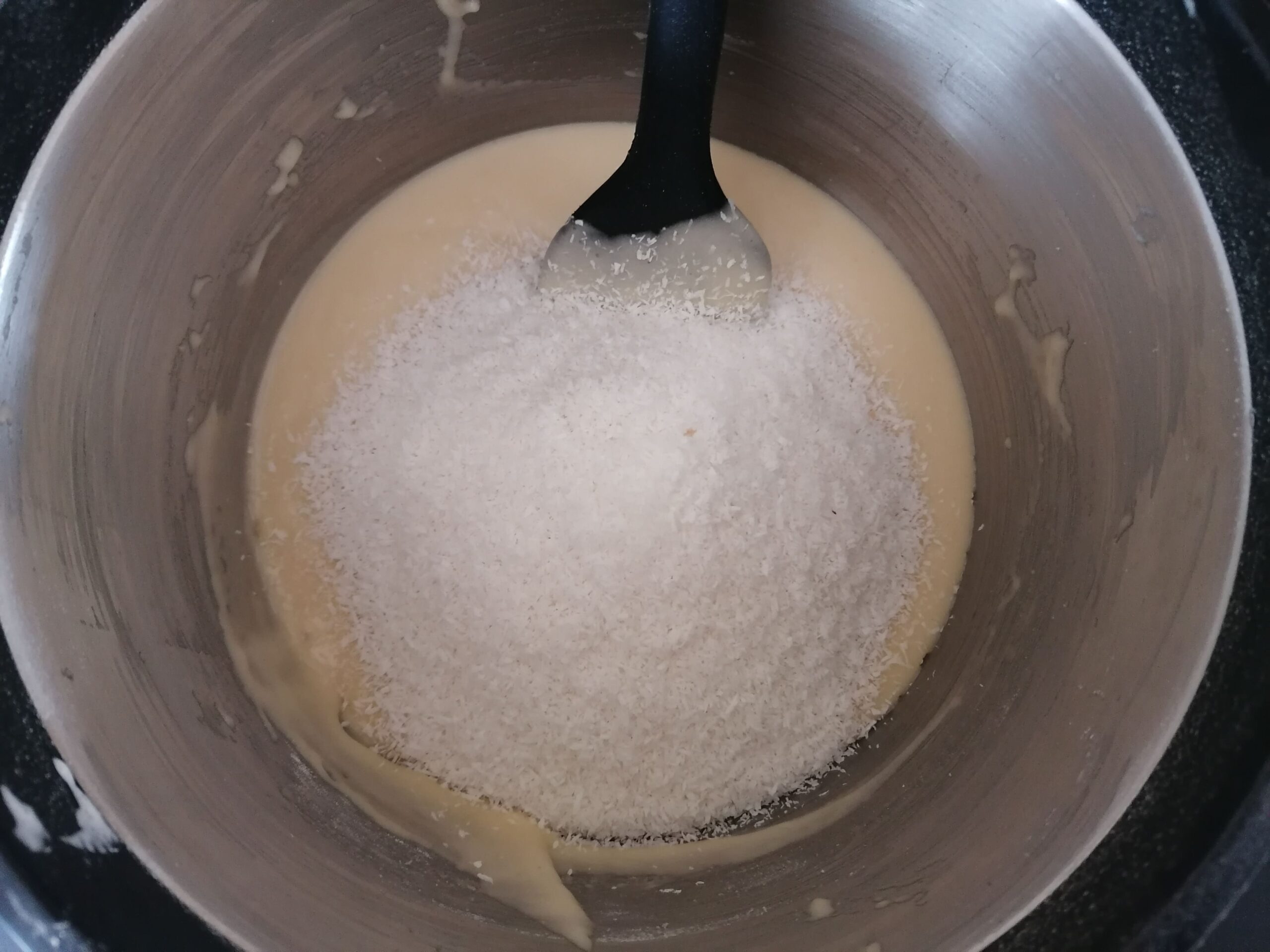 • Le lendemain, réaliser la pâte à cupcakes telle qu’elle est donnée dans la recette de base, en incorporant la noix de coco râpée, délicatement à la maryse, en fin de préparation.
