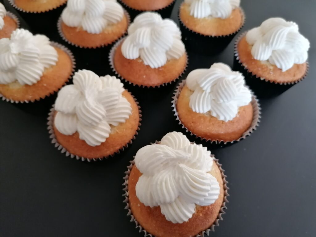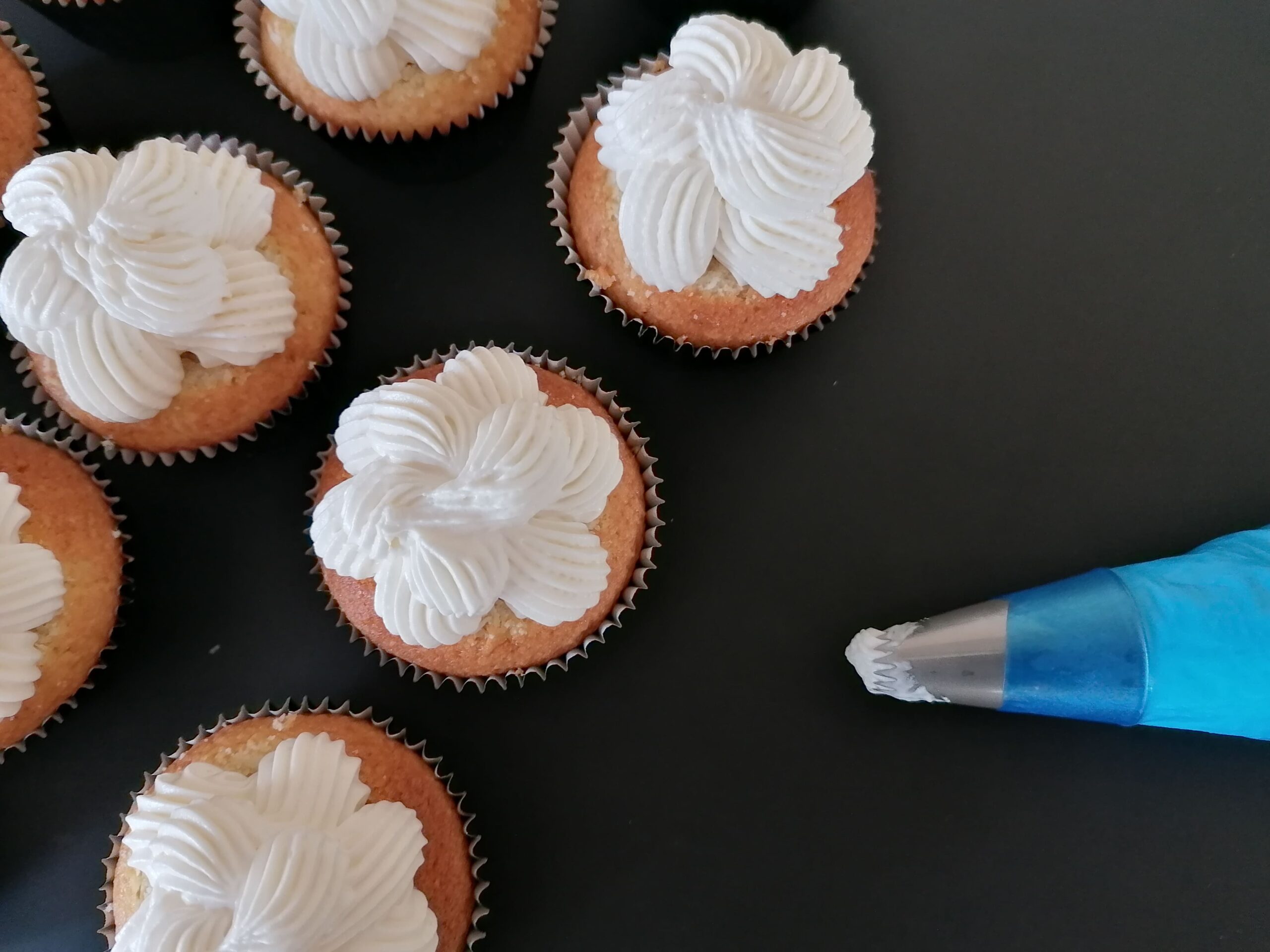 • Prendre l’un des cupcakes dans une main et la poche garnie de crème dans la seconde ;