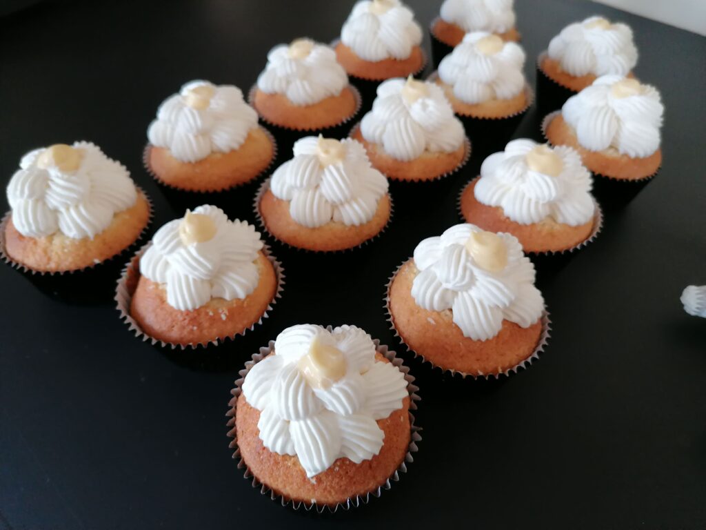 • Il est important que la crème soit prête une nuit à l’avance pour pouvoir la détendre et l’utiliser au dernier moment, sans qu’elle n’est eu le temps de figer de nouveau en la laissant de côté, ceci afin de facilité le garnissage des cupcakes en coulant une crème plutôt souple qui finira par se lisser seule, également, en surface avant de prendre et de figer une nouvelle fois !