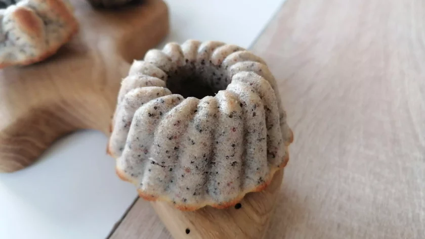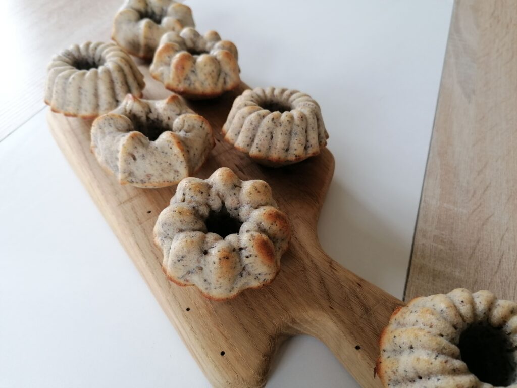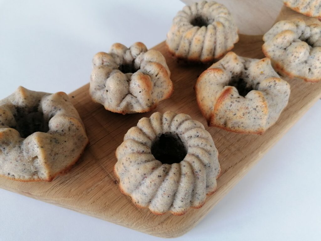 • Réaliser la pâte à financiers telle qu’elle est donnée dans la recette de base, en incorporant, à la spatule, le jus de citrons avec les graines de pavot à la fin de la préparation.