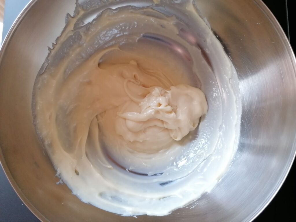 - Incorporer le tout à la maryse, à la spatule ou au fouet.
