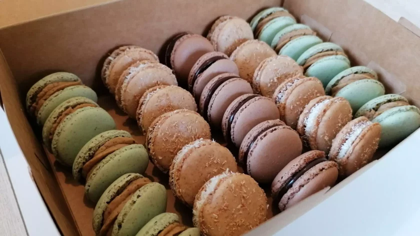 - pour la ganache pistaches : la pâte de pistaches, l’arôme pistaches, l’arôme amandes amères avec le colorant vert pistache.