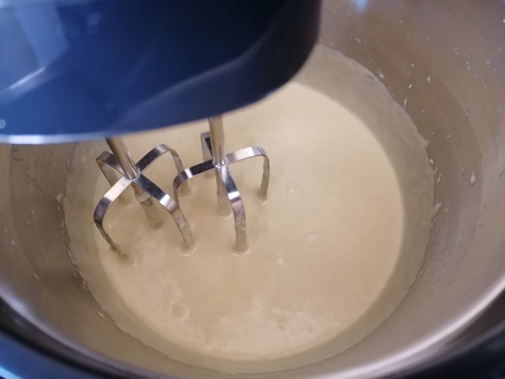 - Laisser ce dernier tiédir à température ambiante le temps d’entamer la confection de la pâte à moelleux.