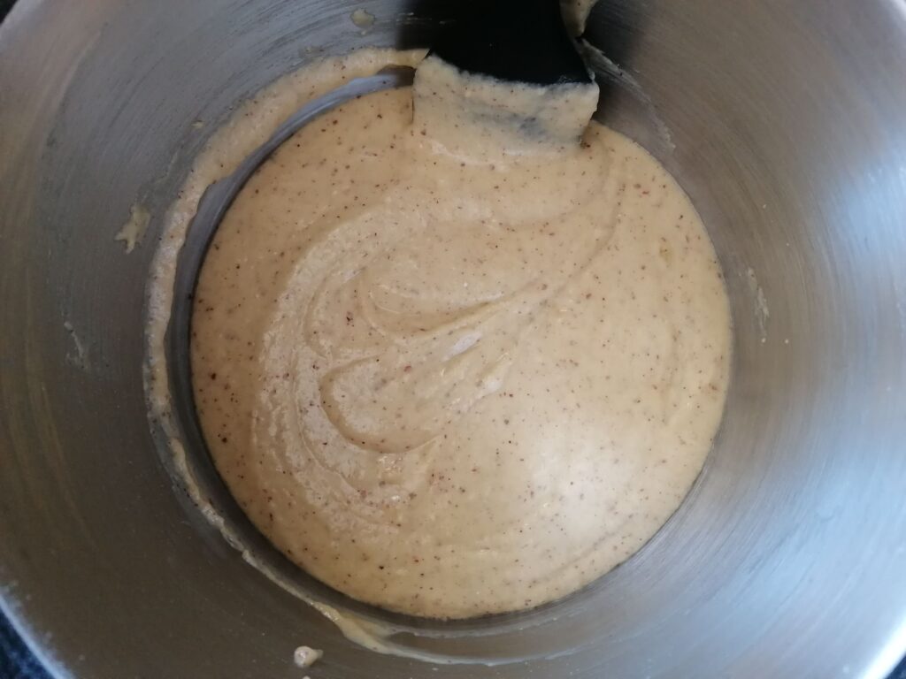 - ajouter, à la maryse et en fin de mélange, tous autres ingrédients en veillant à correctement les allier avec le reste des éléments composant les moelleux : 125g de fruits à coque torréfiés et concassés, 125g de pépites ou de morceaux de chocolat, …