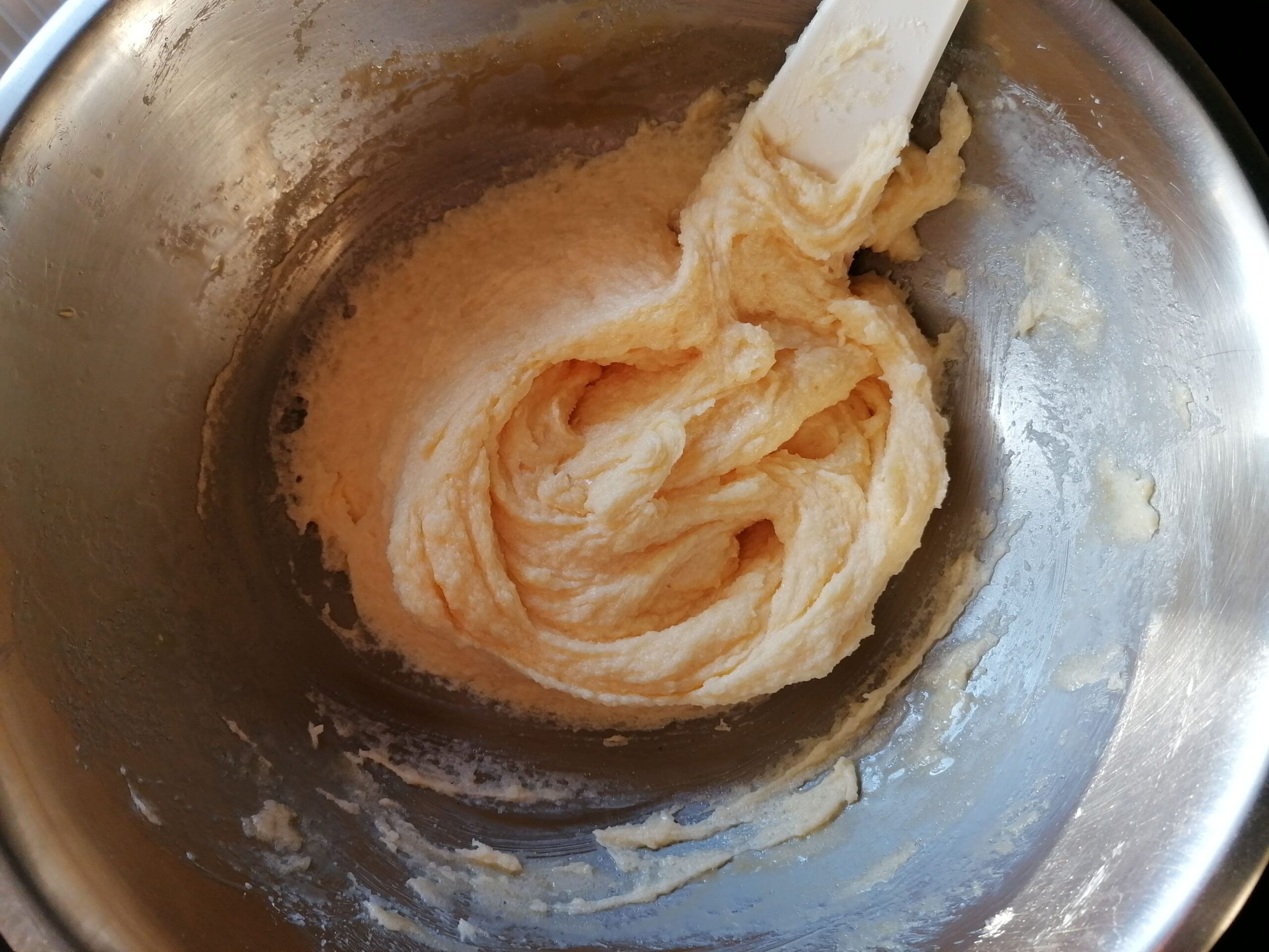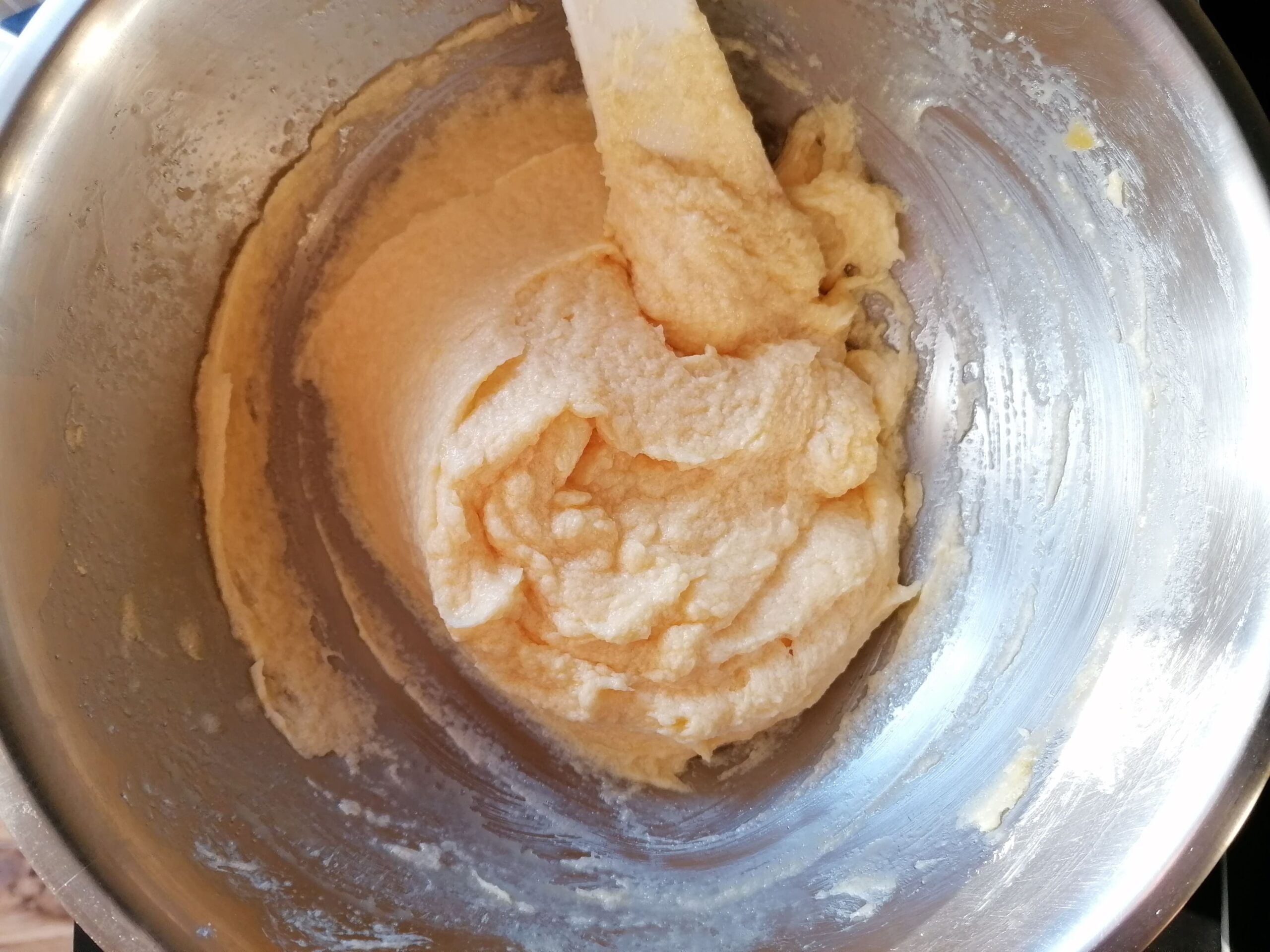 - Incorporer, un à un, les œufs entiers réservés à température ambiante, en finissant au fouet pour facilité l’homogénéisation si nécessaire.