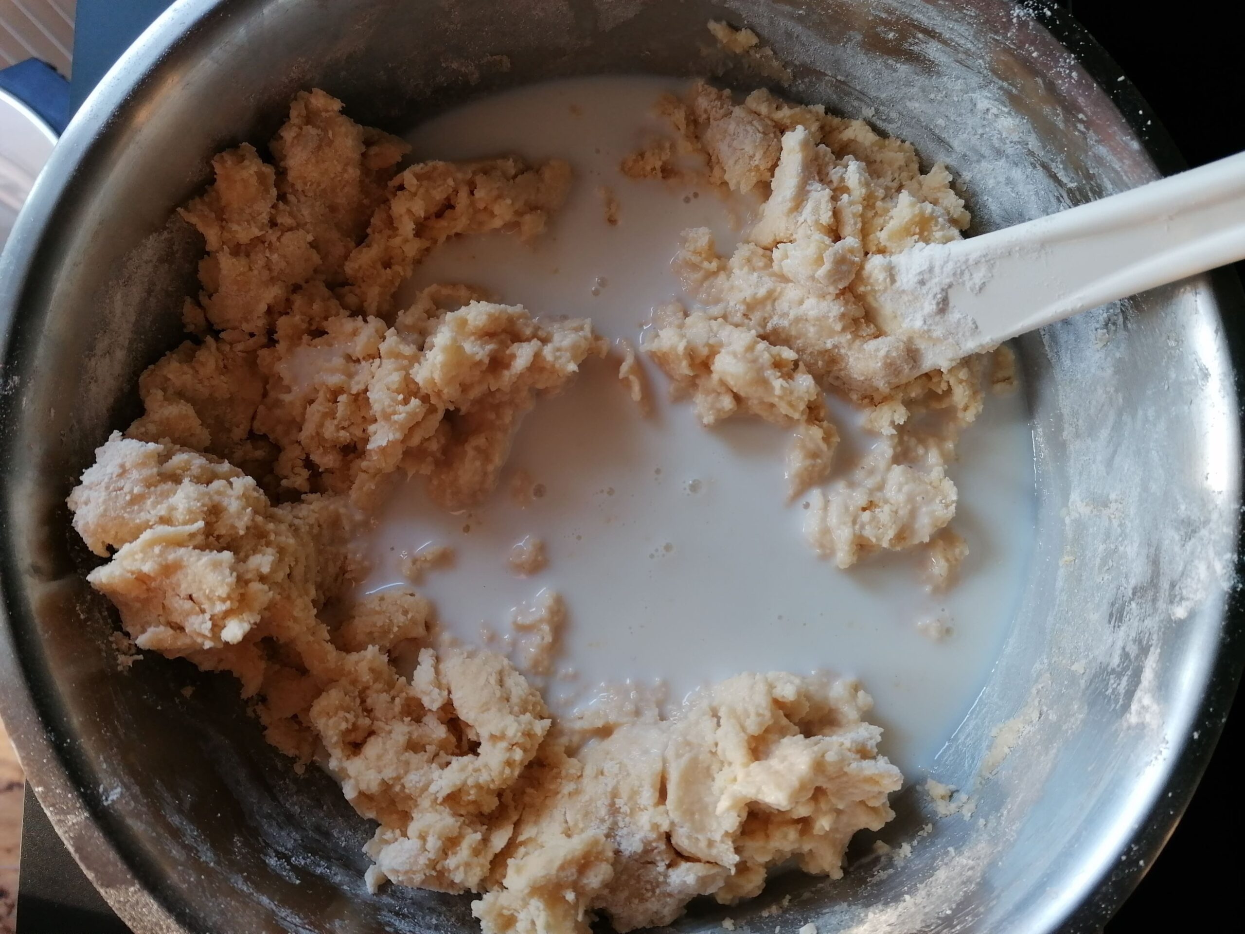 - Pas de panique, ce résultat est normal à ce stade de la recette, ceci due à une grande quantité de farine ajoutée dans une quantité bien moins importante de liquides présente au départ dans la préparation.