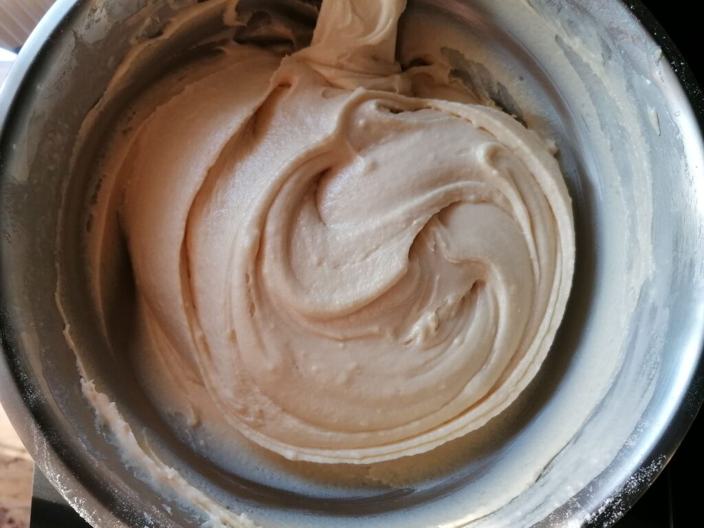 - Réaliser la crème au beurre telle qu’elle est donnée dans la recette de base, sans l’ajout de colorant pour le moment.