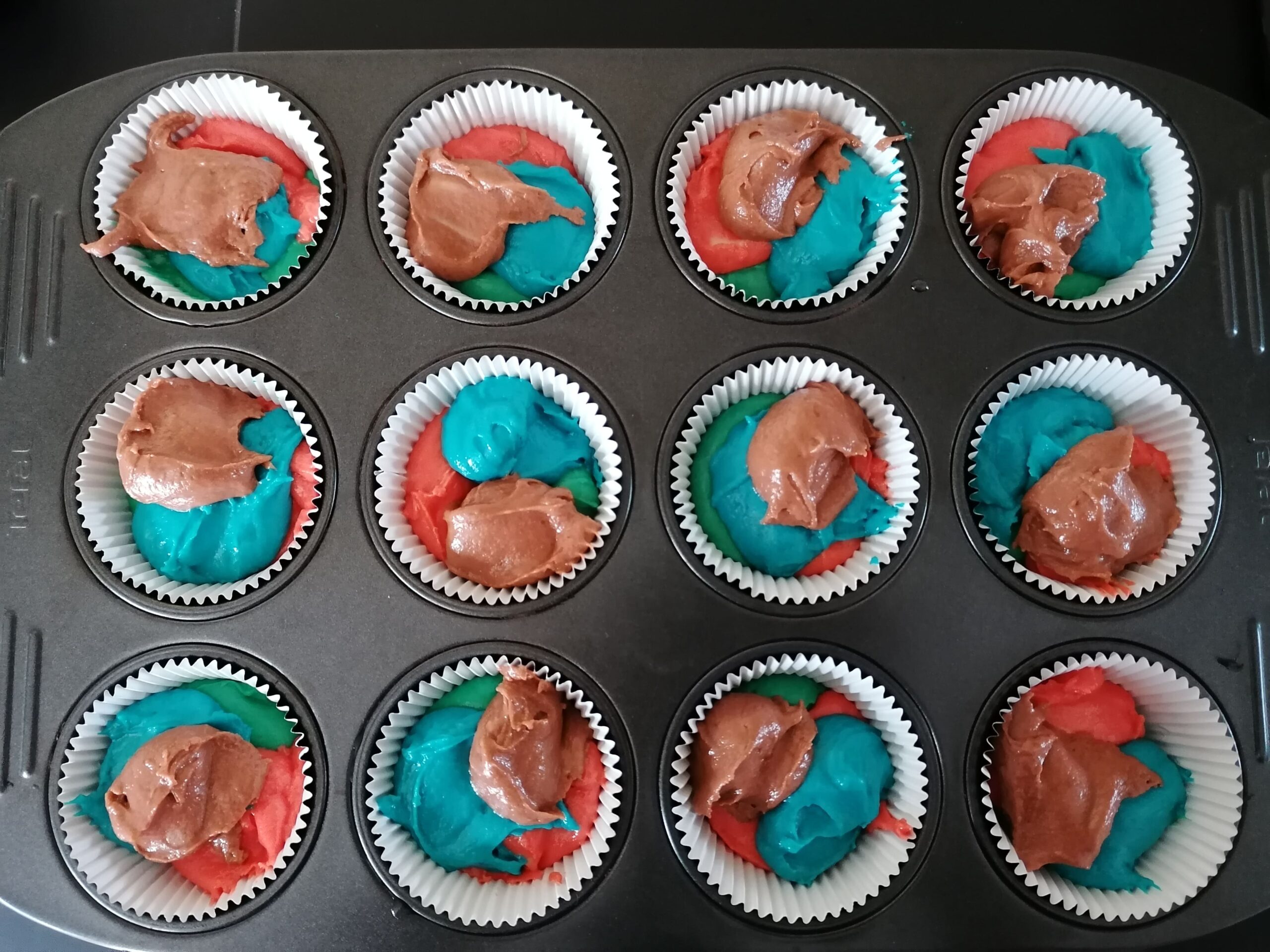 - soit, remplir les différentes caissettes en ajoutant 1 petite cuillère à café de chacune des pâtes dans chacune d’entre elles.