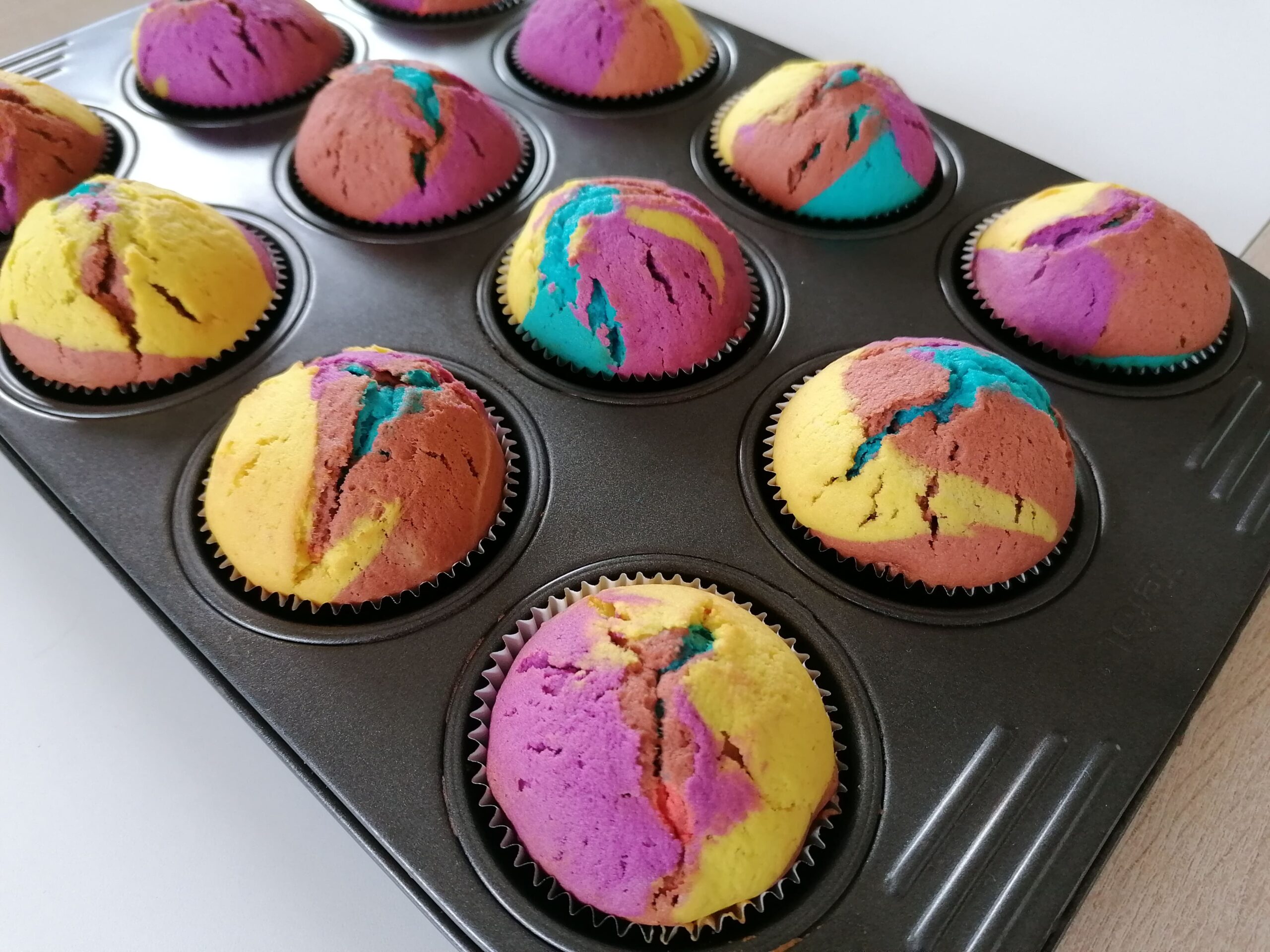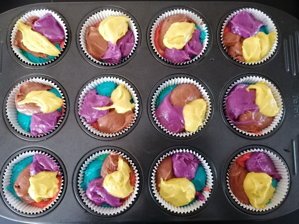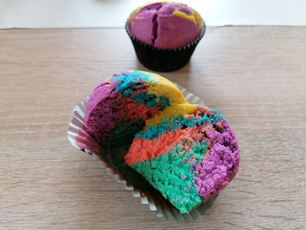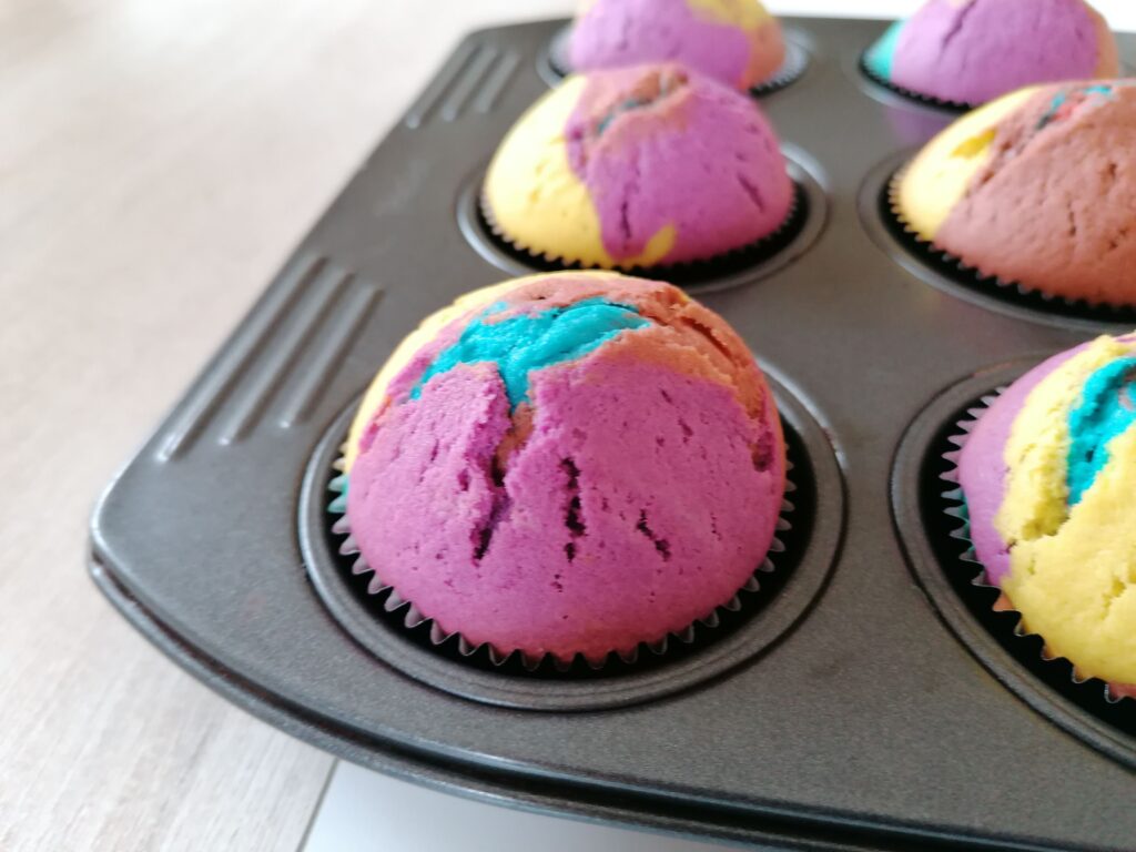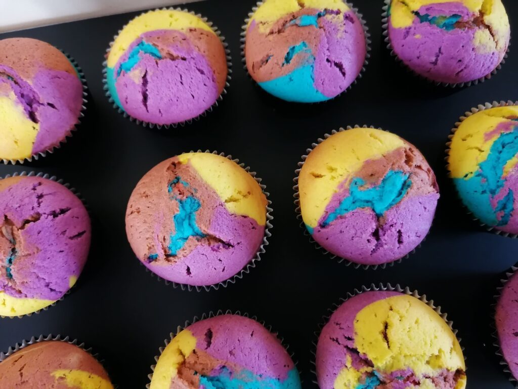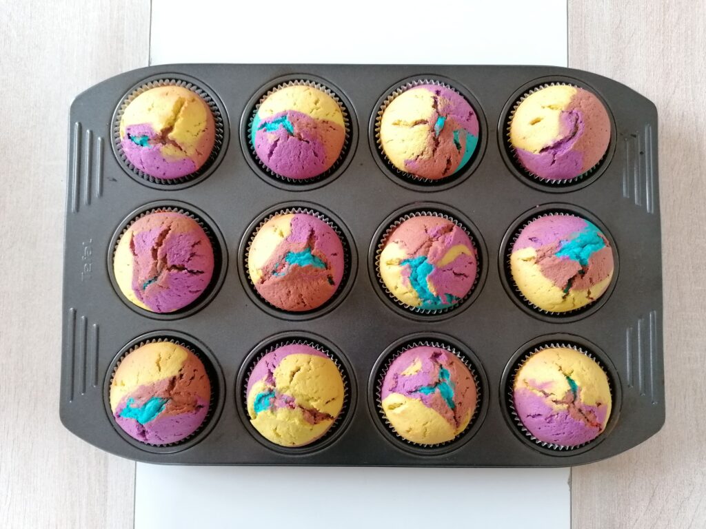 - Récupérer les muffins arc-en-ciel alors bien refroidis.