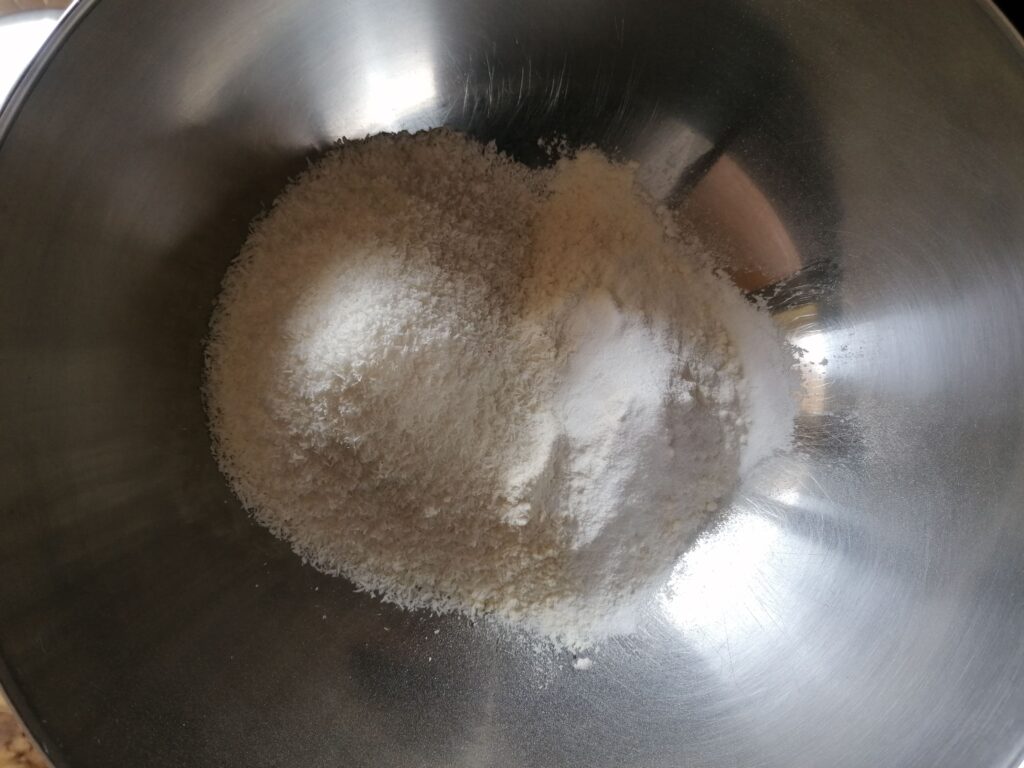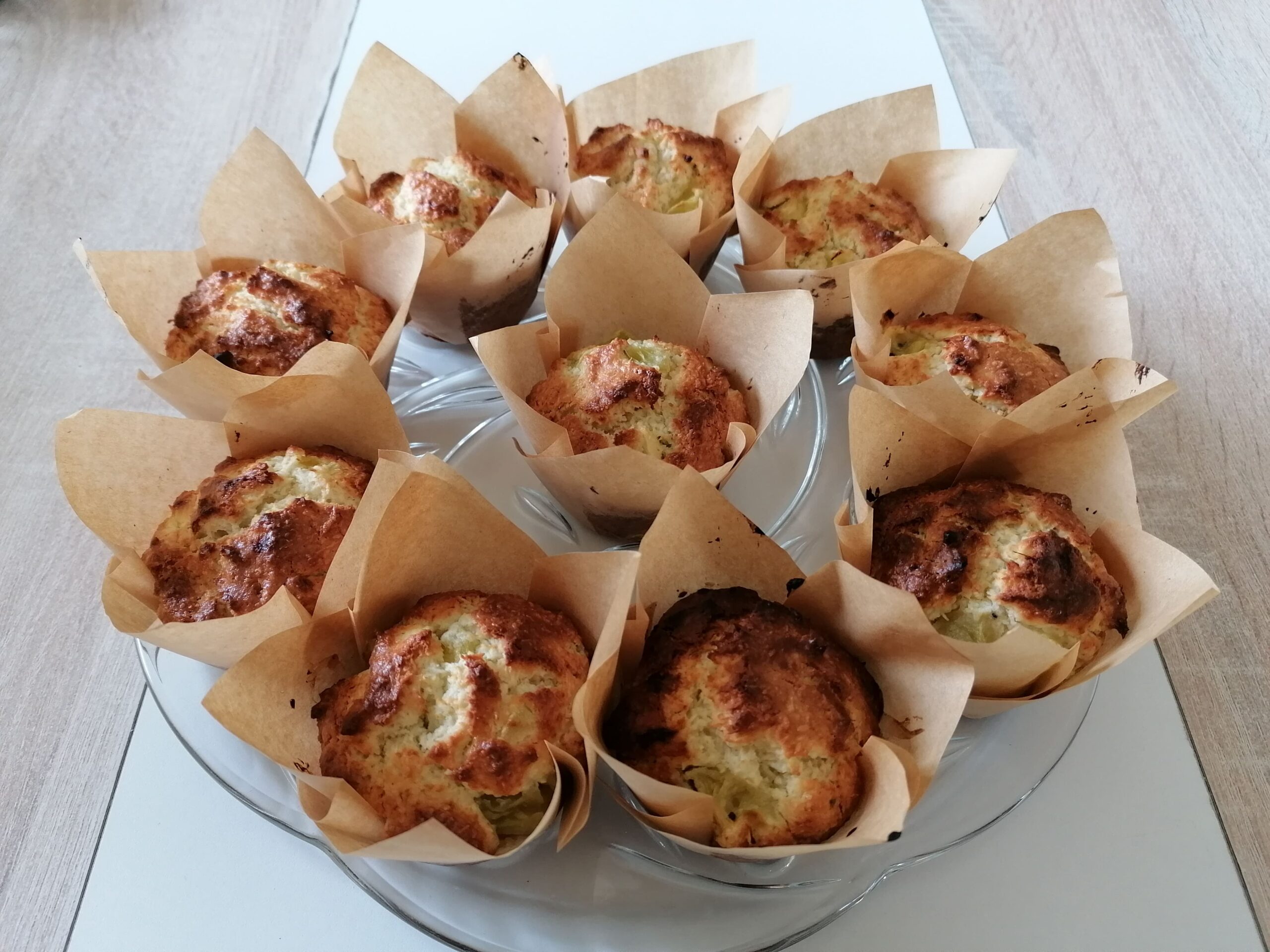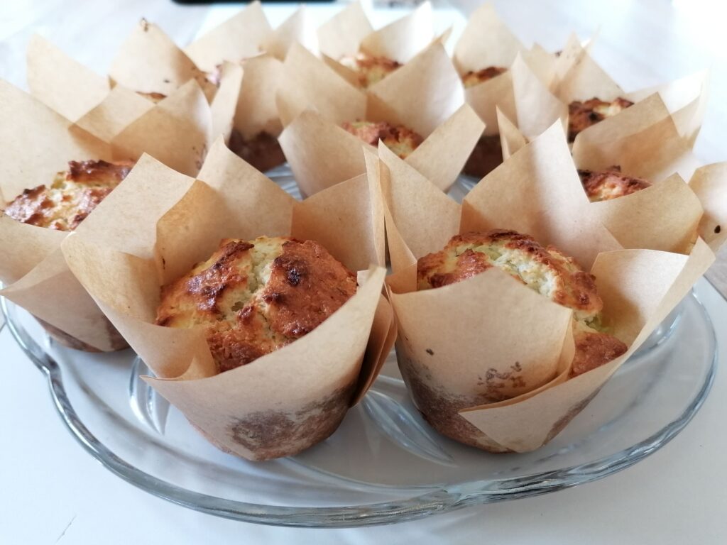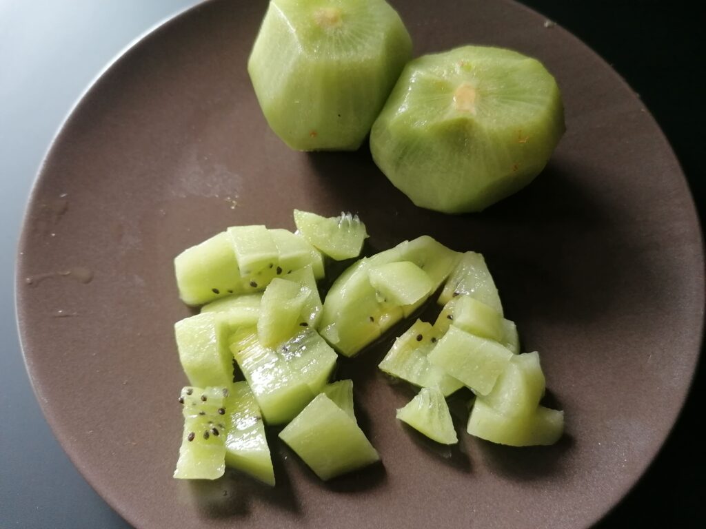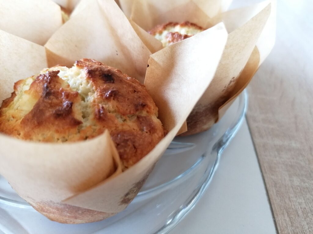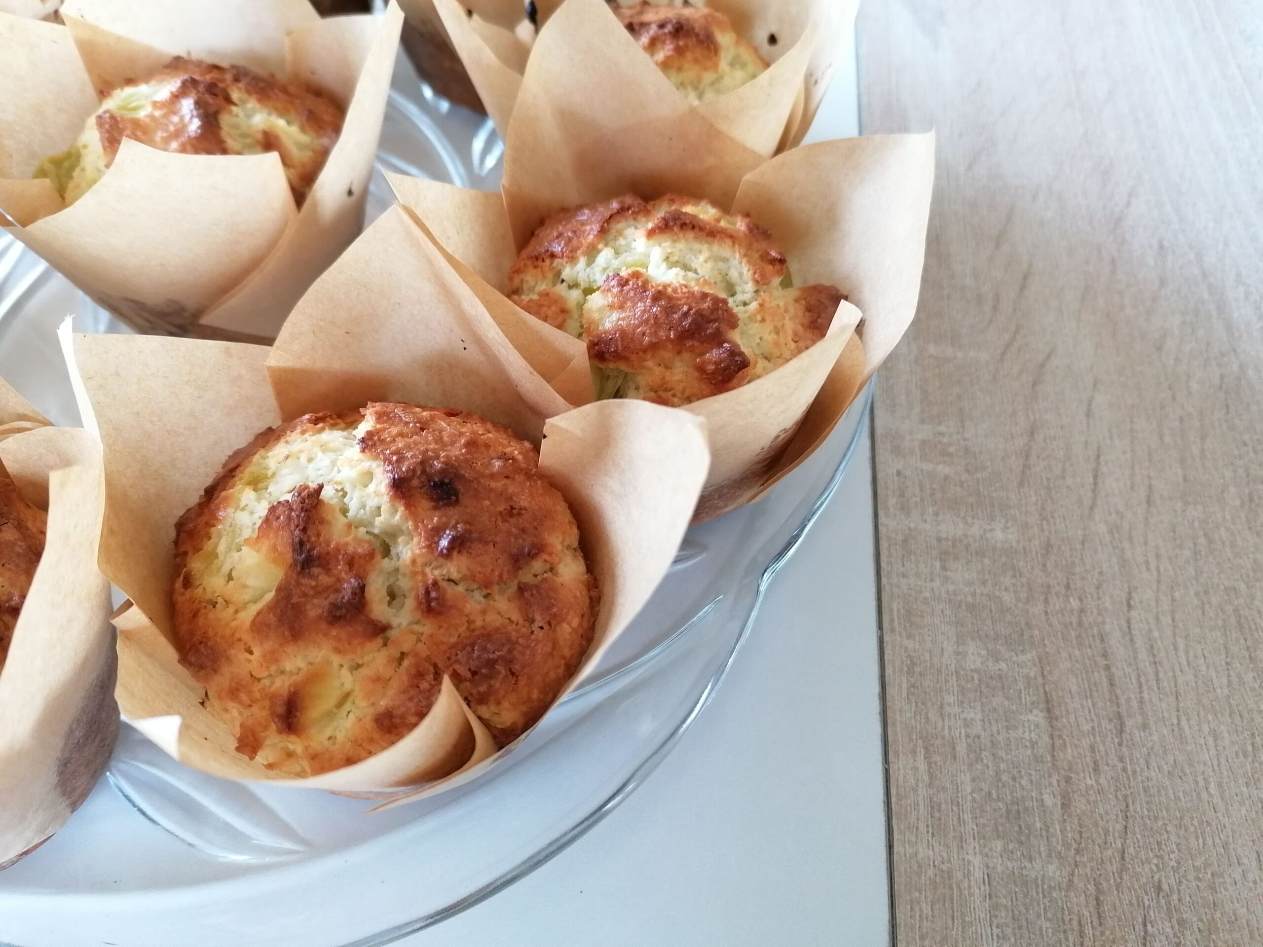 - Réaliser la pâte à muffins en ajoutant la noix de coco râpée dans les matières sèches, en remplaçant le lait entier par de la crème de coco, en retirant les pépites de chocolat noir et en incorporant, en fin de préparation, l’arôme coco ainsi que du kiwi coupé en morceaux plus ou moins gros, qu’ils soient frais comme ici, surgelés ou préalablement égouttés sur de l’essuie-tout s’ils sont en sirop.