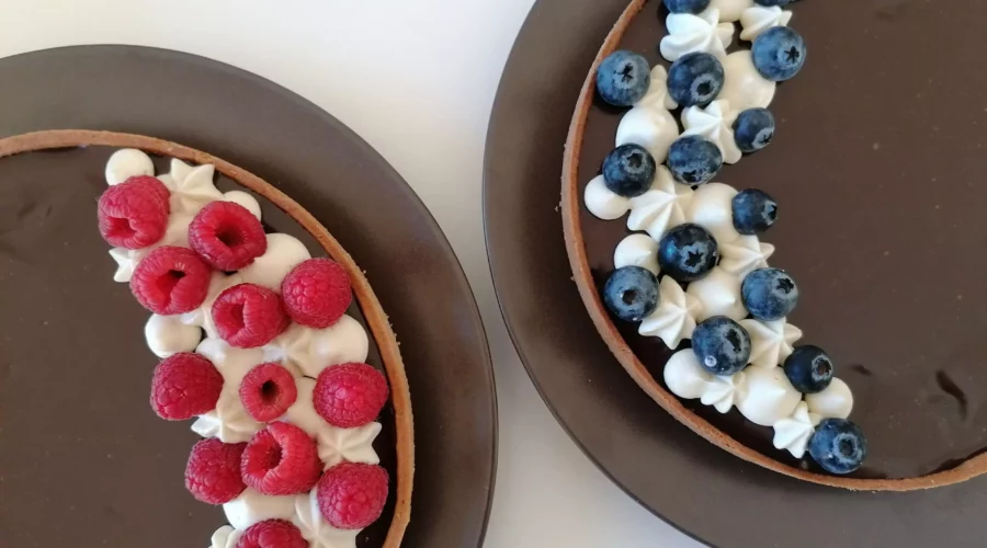 Les tartes choco, amandes & fruits rouges
